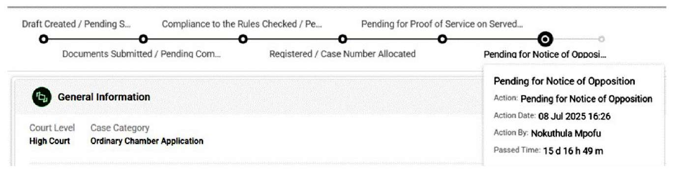 Система позволяет отслеживать ход дела в автоматическом режиме. Каждому поданному делу присваивается номер, и в режиме реального времени отправляются уведомления о запланированных слушаниях, сроках, судебных постановлениях и решениях. Эта функция позволяет сторонам судебного процесса отслеживать ход рассмотрения своих дел в режиме онлайн. Соответственно, упрощается доступ к судебным протоколам и решениям. Стороны и их законные представители могут напрямую получать доступ к материалам дела, протоколам судебных разбирательств, приказам и судебным решениям. Эта функция повышает прозрачность процедур, устраняя необходимость в доступе через сотрудников суда или посредников.